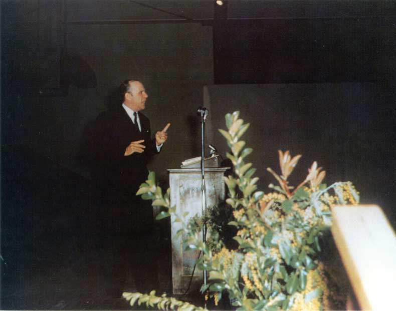 В феврале 1964 года у задней стены церкви “Пристань для души” в Далласе, штат Техас, была сделана ещё одна необычная фотография Брата Бранхама, на которой был обнаружен сверхъестественный Свет. (Фото №16) На этой фотографии Свет явился как язычок пламени над правым плечом пророка. (Знакомым с Братом Бранхамом людям известен тот факт, что его правое плечо всегда было ниже левого. Помазание всегда находилось справа, где стоял Ангел Господень.) Когда Брат Билли Поль показал эту фотографию своему отцу, Брат Бранхам сказал убрать её. Он сказал: “Они не поверили фотографии в Хьюстоне, не поверят и этой”. По этой причине не многие люди видели эту фотографию, по крайней мере, до смерти Брата Бранхама. Затем Брат Билли Поль повесил эту фотографию в его кабинете, но не предоставлял её копий, из-за того, что сказал ему Брат Бранхам. Недавно я получил негатив этой фотографии вместе с другими фотографиями Брата Бранхама от одного фотографа, который написал мне письмо с предложением продать их. Её можно приобрести в Офисе Скинии Тусона, 2555 Норд Стоун, в городе Тусон, штат Аризона.