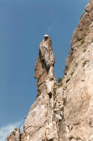 Когда я отправился дальше по тропе, я увидел другие горные образования, которые легко узнавал из фотографий, которые сделал Брат Бранхам. Наконец, пройдя ещё несколько метров, я остановился позвать Брата МакКлинтока. Я взволнованно сказал, что, на мой взгляд, где-то из этого района была сделана фотография. Повернувшись направо, спиной к отвалившемуся куску породы, мои глаза вдруг оказались устремлёнными на скалу, не просто на скалу, но в этой скале была отчётливо видна белая надпись “орёл”.